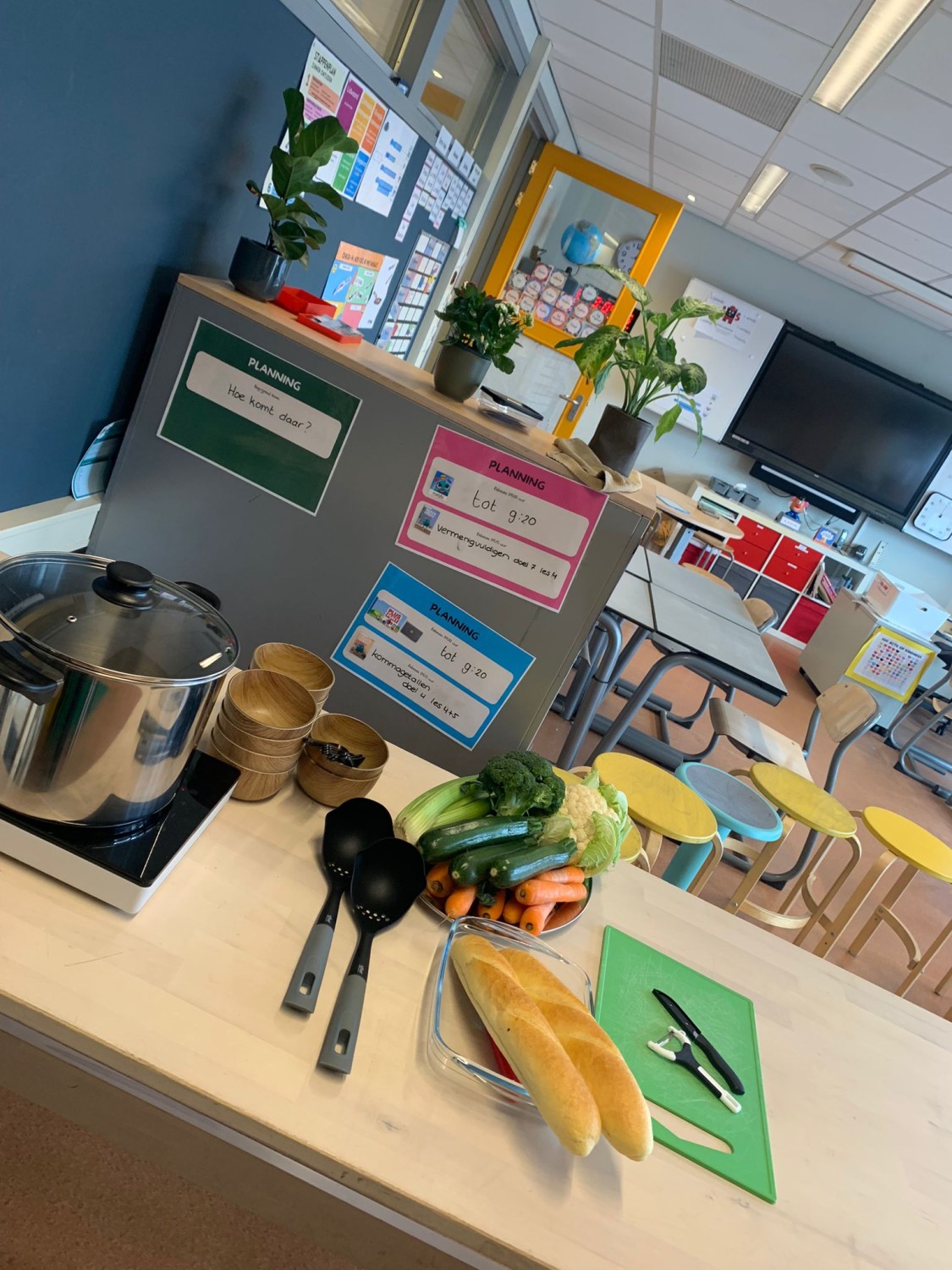 Door één van de docenten van de Evangelische Basisschool Eindhoven (EBS) is Soep & Co gevraagd om te vertellen over het belang van het omkijken naar kwetsbare mensen. Dat doen we natuurlijk inmiddels al jaren, en we vertellen daar heel graag over! In vier lessen hebben we twee groepen kinderen – in de leeftijd van 5 tot en met 8 jaar - uitgelegd waarom het zo belangrijk is om te koken voor deze groep mensen, en wat de impact daarvan is.